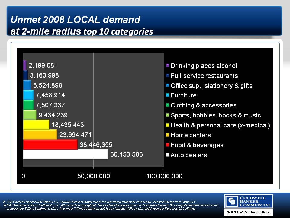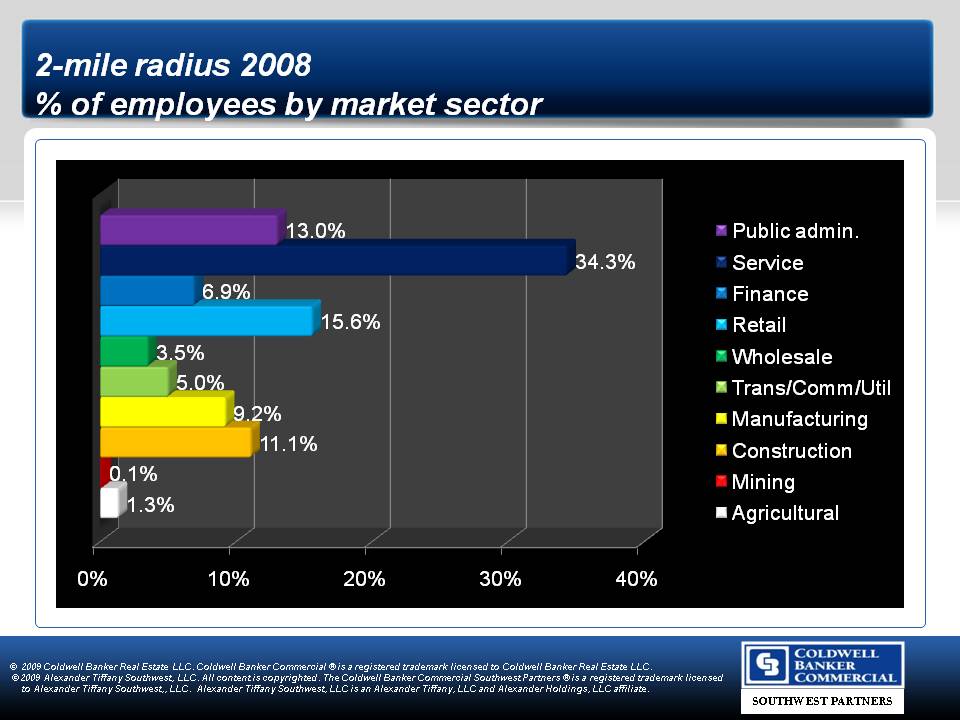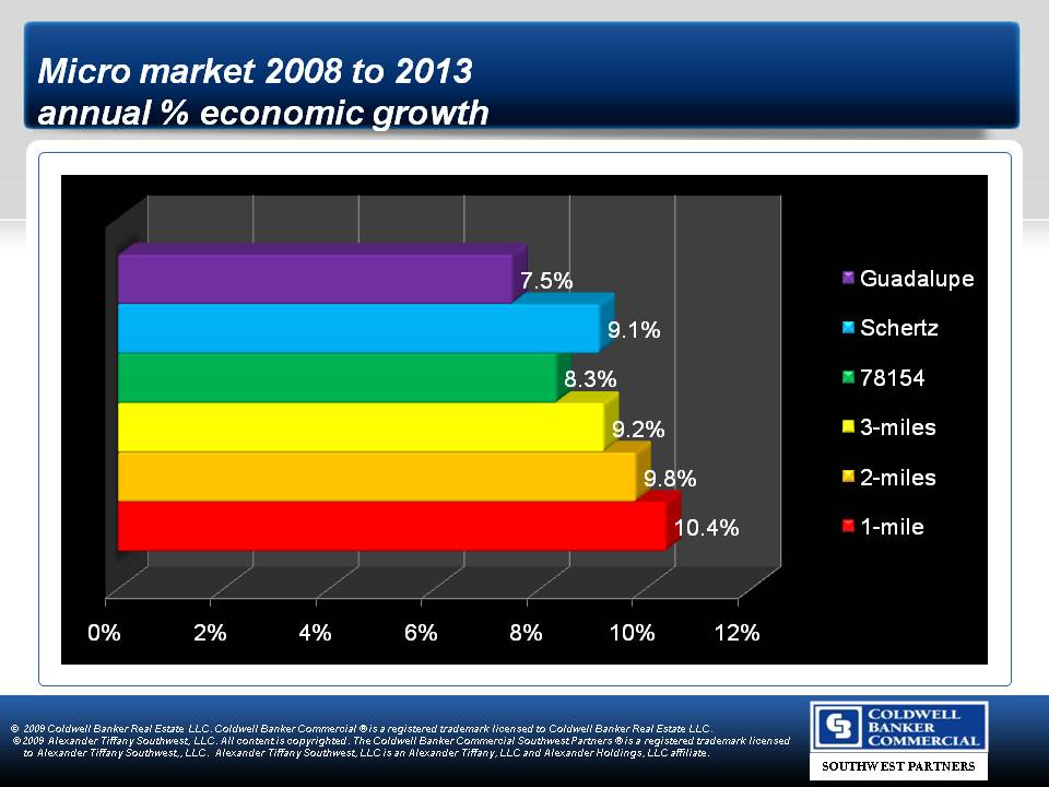 (2) 2-mile radius. The economy is estimated at $950M+ and projected to grow 9.8% per year to exceed $1.4B+ by 2014.