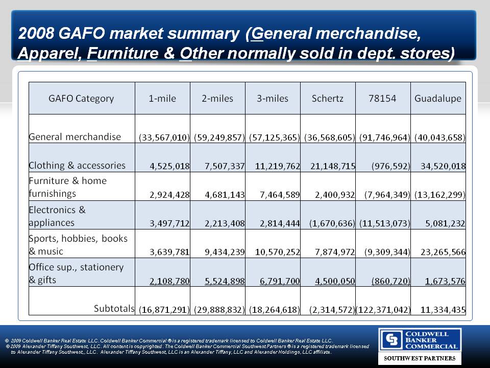 General merchandise, Apparel, Furniture and Other (“GAFO”) represents sales at department stores. It excludes demand related to anyone other than a local resident.