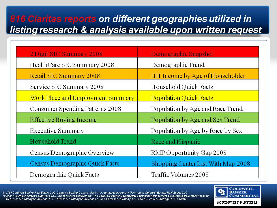 Coldwell Banker Commercial Southwest Partners is a wholly owned franchise of Alexander Tiffany Southwest, LLC. Analysis is preliminary, based on proprietary systems and models, is time sensitive and based on assumptions-stated and unstated. Graphics are only renderings. Measurements are only estimates. No warranties are expressed or implied. All content is protected by copyright laws, is only for prospects or legal representatives, and should not replace buyers own due diligence and analysis. Any other use is prohibited.