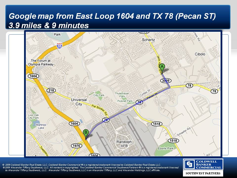 From E Loop 1604 N & FM 78 Road/Pecan ST/Seguin RD it is 3.9 mi. and 9 min.