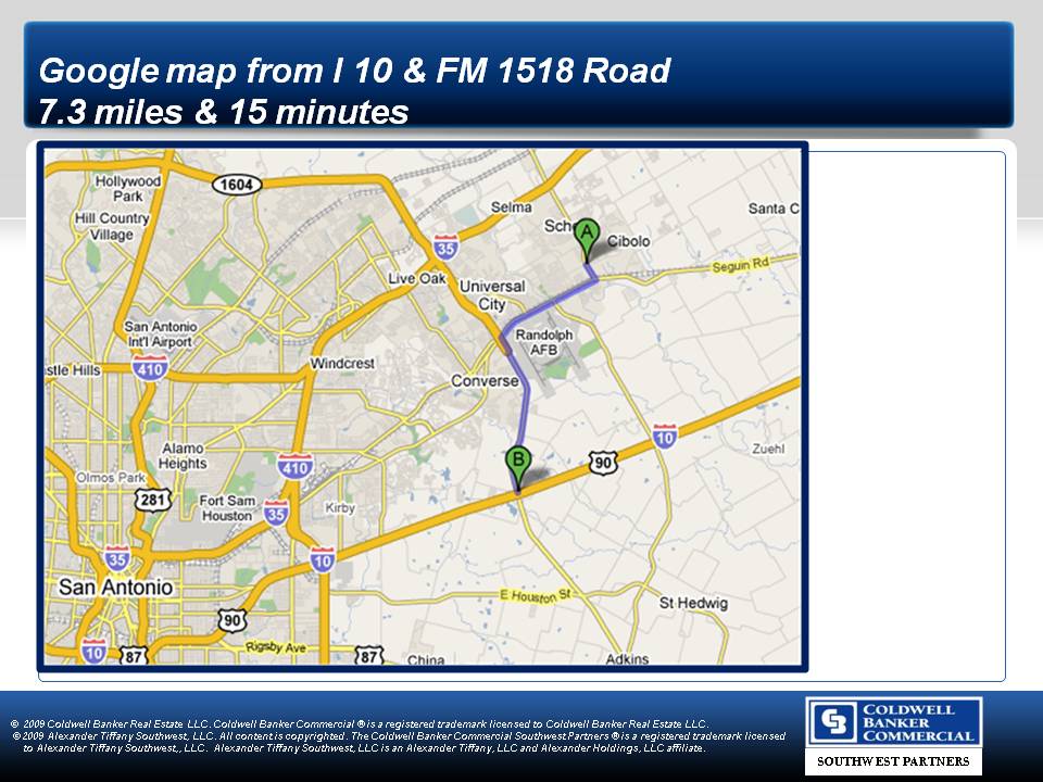 (3) Excellent proximity to major highways. 2.6 mi. to I 35, 6.7 mi. to East Loop 1604, 9 mi. to I 10 and 17 mi to I 410 East.