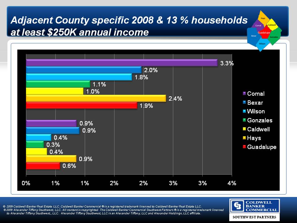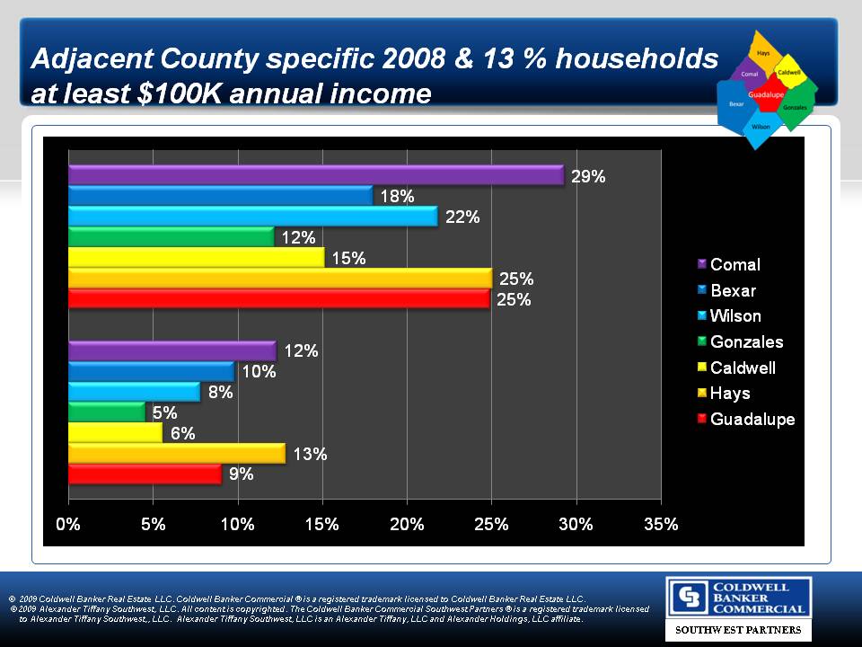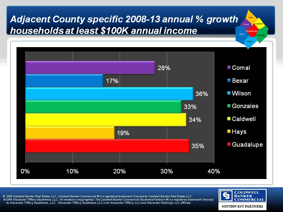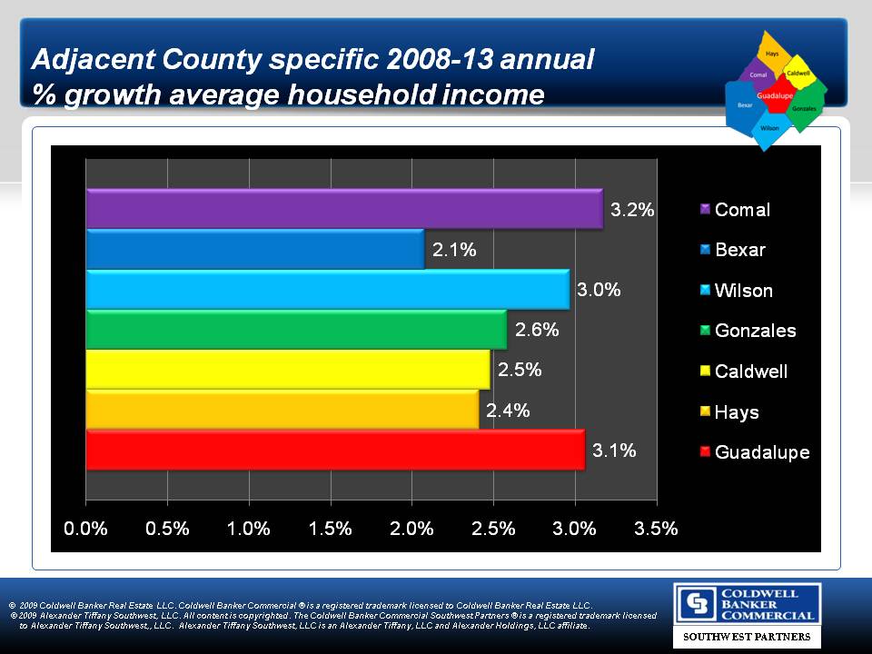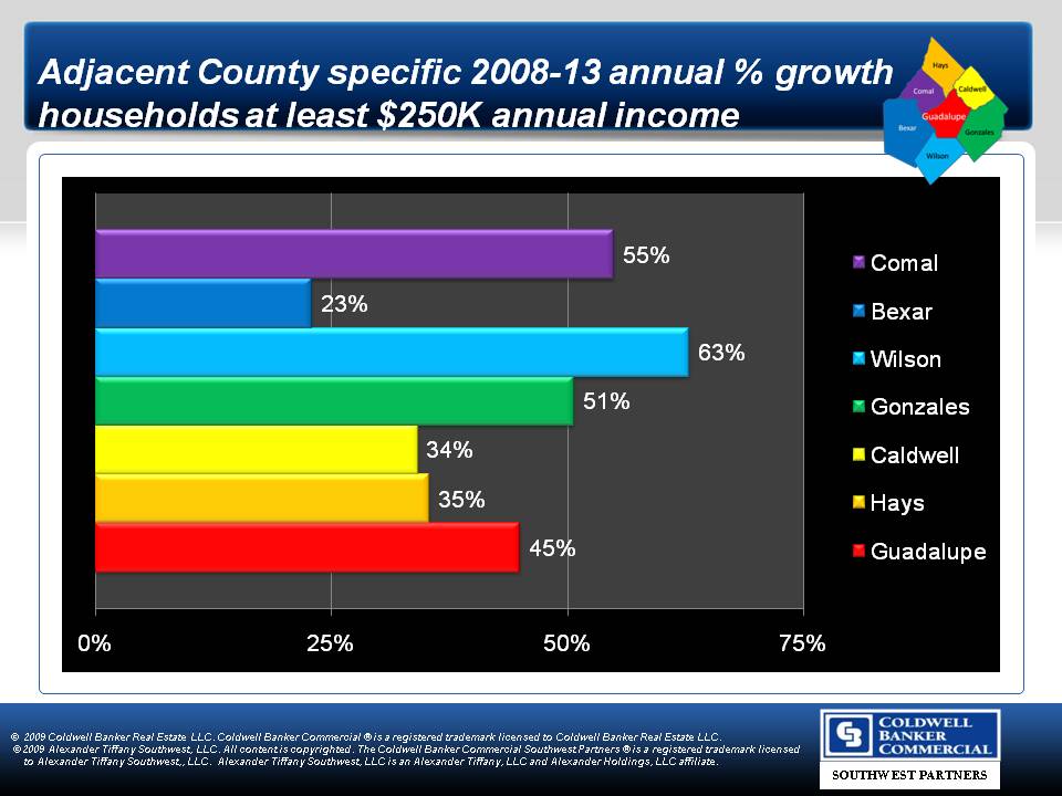 (17) Bexar County. The 2008 Avg. HHI is $60,143 and projected to grow by 2.1% per year.