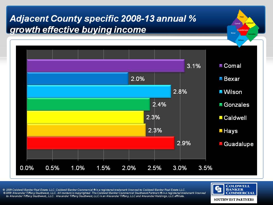 (15) Guadalupe County. The 2008 Avg. HHI is $67,769 and projected to grow by 3.1% per year.