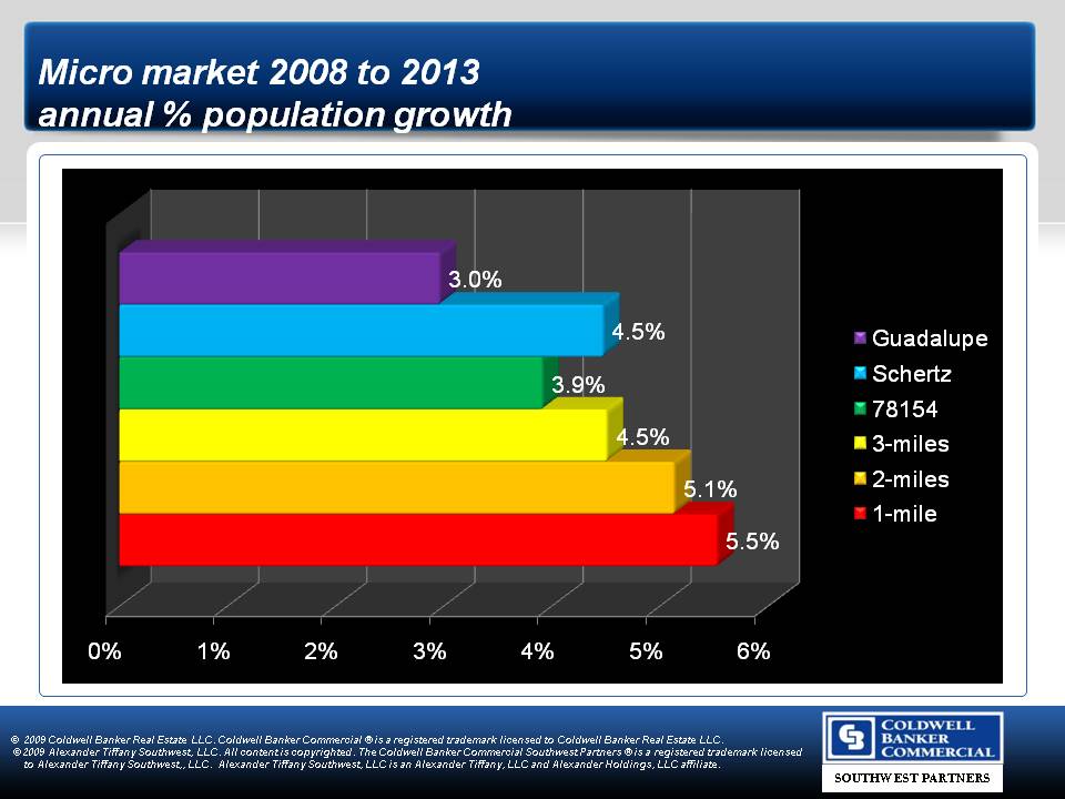 * “Micro market” includes: 1-mile, 2-mile & 3-mile radiuses, 78154 zip code, City of Schertz and Guadalupe County.