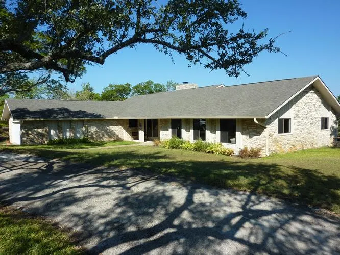 Wonderful custom home on over 10 acres of privacy. You will enjoy a beautiful setting amongst the many trees, Bear Creek, and hill country views for miles. The house features a huge great room with sunken bar and massive fireplace, updated kitchen with granite countertops and stainless appliances, roof in 2010, 2 recent 15 SEER A/C systems, fresh paint, and pool and hottub. There is a seperate 500 sq ft "mancave" that also has full bath and wetbar (not in sq ft)