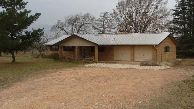 Very nice brick home with a metal roof, 3 BR 2 baths with vinyl floors, some look like wood, large living room with brick fireplace ( wood burning ) good size bedrooms, CH/A, ceiling fans, attic fan in hall, kitchen/dining room with cooktop, built-in oven, dishwasher, refrigerator, hall bath with tub/shower, tile surround, master bath has shower, two car garage with extra storage and water softener, large laundry room, 10.67 acres with peach, plum, apple and pecan trees, fenced into several pastures with improved grasses and post oak treed section, two sheds for equipment & animals,garden area, sand loam soil
