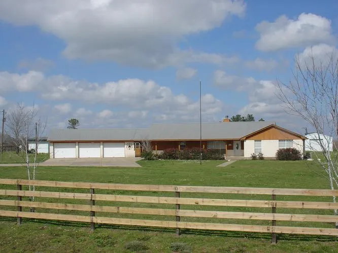 Prime horse property! Spacious home with covered porches, open floor plan, crown molding & slate floors throughout the main living area & wet areas. Island kitchen w/custom cabinets, solid surface countertops & breakfast bar. Property is 4-board fenced & x-fenced w/7-stall barn with 5 turnouts, 2 foaling stalls, automatic water feeders to all stalls, cement center aisle & tack room. Plus a 24'X 36' implement storage/hay barn, a large well house that also serves as an exercise room, 3 improved pastures & a stocked pond. Just 5 minutes from Hwy 290 for an easy commute.