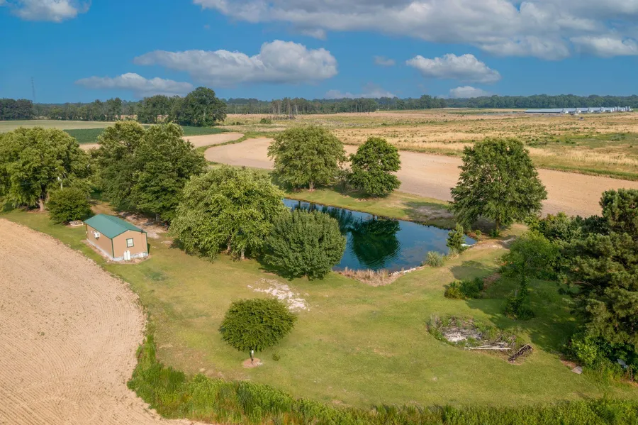 Come enjoy your private retreat surrounded by farmland on 10.76 Acres in Goldsboro! This property hosts TWO buildings with electricity and water. The first is the delightful 14x70 two-bedroom mobile home providing an efficient layout for maximum functionality. Step inside and be greeted by the comfortable living area that flows right into your eat-in kitchen. Two well-appointed bedrooms share a full-sized bath providing space to unwind after a long day. Enjoy watching the sun go down overlooking your pond from your screened-in back porch. The 14x65 Old Hickory building is a true gem with endless possibilities and is equipped with heating and AC! Enjoy overlooking the peaceful landscape on your covered front porch. Inside you will find an open-concept living space that invites you to make it your own. The expansive living area flows right into the quaint kitchen with a breakfast bar for quick meals. This place would be a great atmosphere for hosting friends, a man cave, she shed, or a hobby room! Adding to the convenience, this building features a half bathroom ensuring guests have access to facilities without having to venture out of the building. This property is a fishing and outdoor enthusiast's paradise! The pond has been stocked with fish and maintained regularly. Come enjoy country living on this nearly 11-acre retreat while still being conveniently located 15 minutes from area shopping and dining.