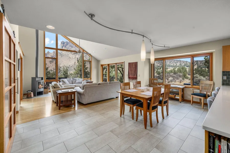 Magnificent views at the base of Marsupial Rock formation and above Crooked River Canyon located 1 mile from Smith Rock State Park. A life amongst nature, surrounded by wildlife and the majestic color-changing mountains in this private nature preserve. The 10.79 acres extends to the middle of the river. Absolute high-quality finishes meticulously designed to bring the outside in. All new solid wood windows and doors, home completely remodeled 10 years ago. Quartz countertops, 5 burner gas stove, hardwood floors, huge windows, large tile showers, 2 large bedrooms w/ensuites, 2.5 baths, Bonus room w/sofa bed, wrap-around deck for relaxing in the peaceful environment. For extra warmth and ambiance, there is a beautiful European woodstove in the living area. This beautiful home is an active Airbnb called Fallen Snag Lodge. There are many raving reviews on the website of the Airbnb. The peace...