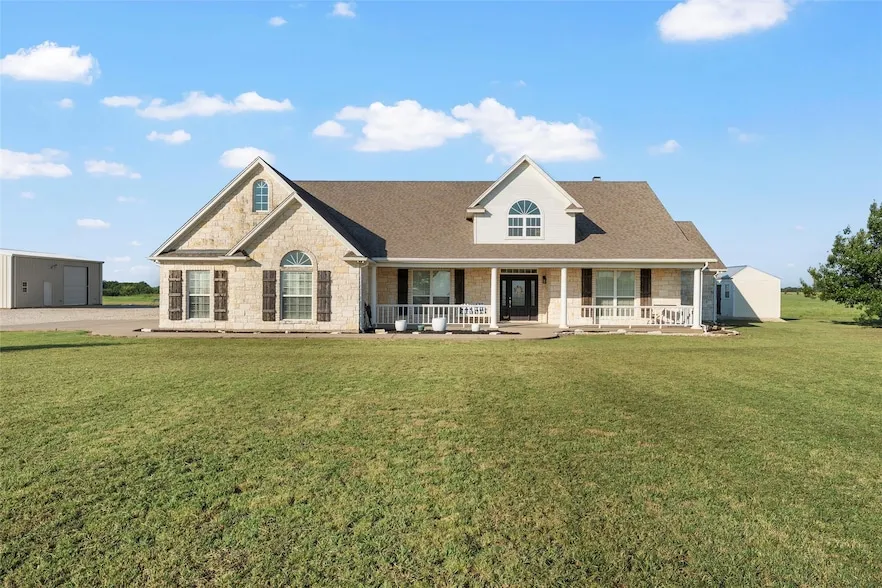 There s nothing quite like the quiet of country evenings, where the only decision you ll make at sunset is whether to sit on the porch swing a little longer or take one more stroll across the land. On just over 10.5 acres that produce hay, this property offers the kind of space and serenity most people only dream about. This home has been lovingly maintained and feels instantly welcoming. The open layout makes gathering easy, with a stone fireplace at the heart of the living room and a gourmet kitchen with granite counters, a gas cooktop, and an island ready for family meals and entertaining friends. The primary suite offers a whirlpool tub, separate shower, and dual sinks. Beyond the home, the huge workshop with a second story and plumbing for a full bath invites you to create, work, or play as you please. This is more than a house, it s a chance to live the life you ve been waiting for...