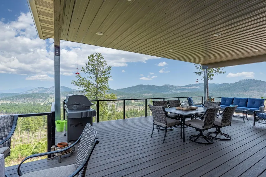 MILLION DOLLAR VIEWS!! Relax on the open and covered decks with one of the most breathtaking long range views in the Black Hills an easterly rare view overlooking the adjoining USFS lands ensuring unparalleled privacy and recreation! This custom-built ranch-style home is meticulously constructed with an abundance of well-thought-out and custom features. This sprawling residence is a testament to quality craftsmanship. The interior is adorned with custom cabinetry and trim throughout. The large open great room space is ready for entertaining with different sitting areas all showcasing the outside views, a fireplace, a custom farm table, & a handcrafted back bar. Room for everyone! Each generously sized bedroom comes with its own private bath!! This zero-entry handicap accessible home is designed for easy, carefree living, with every detail carefully considered to enhance your enjoyment o...