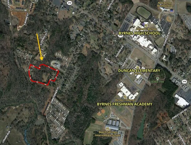 Prime 10.24 acre development tract in Duncan with extreme investment potential. This tract is located less than 2 miles from I-85, and less than a mile from both Byrnes High School and Duncan Elementary.