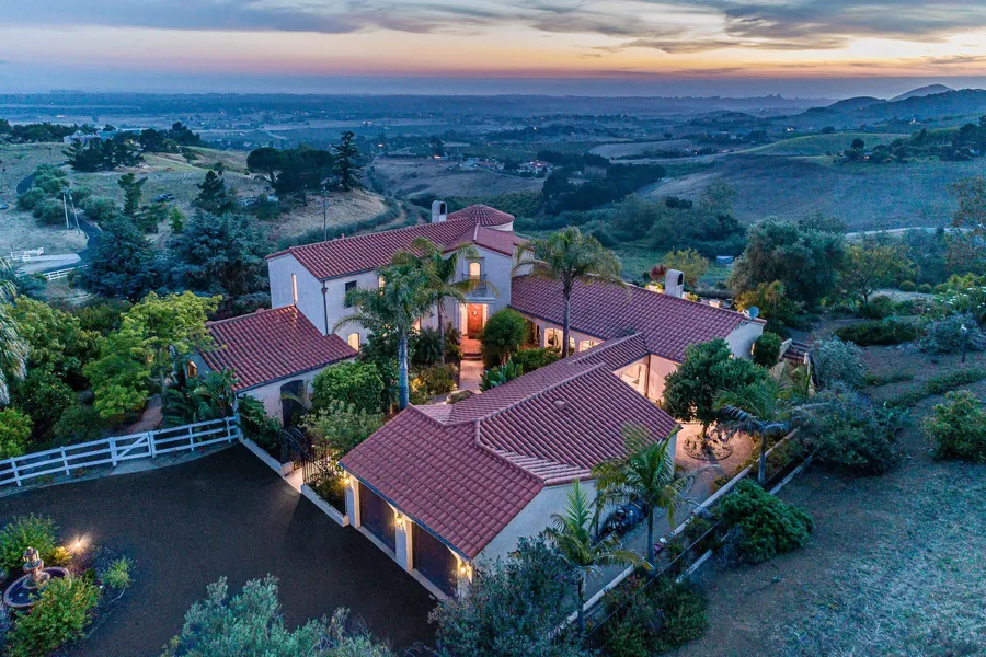 Feel like youve escaped it all every time you come home to this stunning ocean view Spanish-style hacienda with detached guest casita, vineyard & orchard located in the Highland Hills gated community. The guest house and avocado orchard are both income-producing, while the vineyard grapes were bottled for sale by the sellers winery. Enjoy the private refuge of this hilltop 10-acre property, while being minutes from desirable golf courses, award-winning wineries, restaurants, sandy beaches, and charming small towns on the Central Coast.