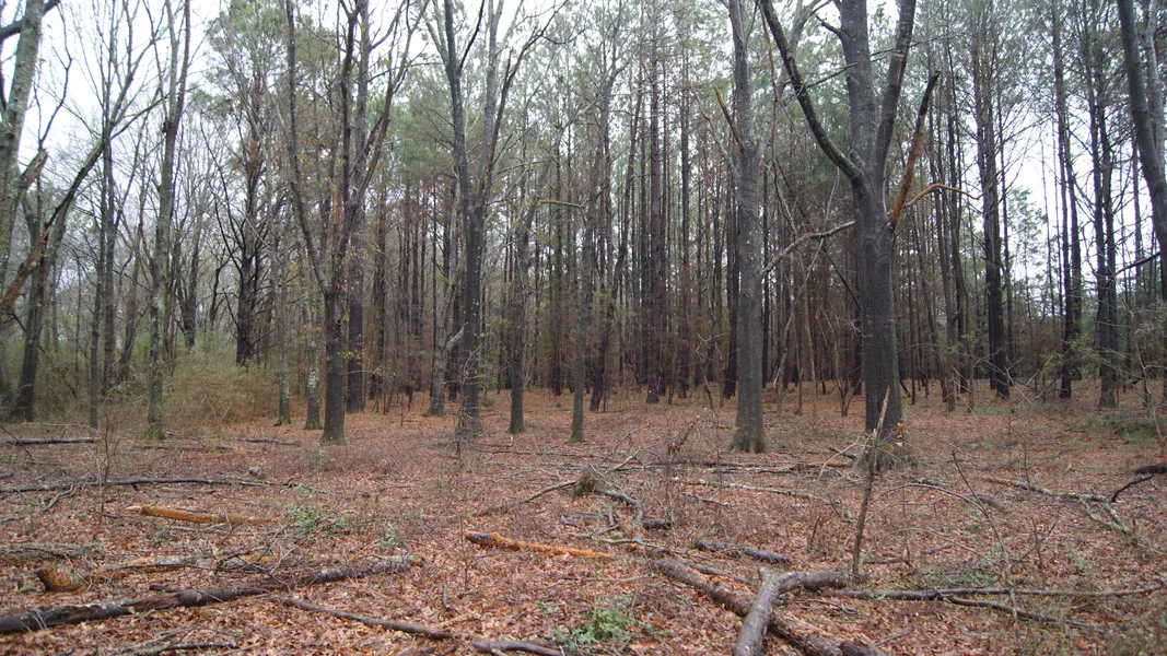 This property is mostly flat with Campbell Creek running through the bottoms. A mixture of hardwoods and pine make up the property. A great homesite is already established where there is an old, wooden structure (see photos) located on the Puckett Ferry Road side of the property. See aerial map for location.