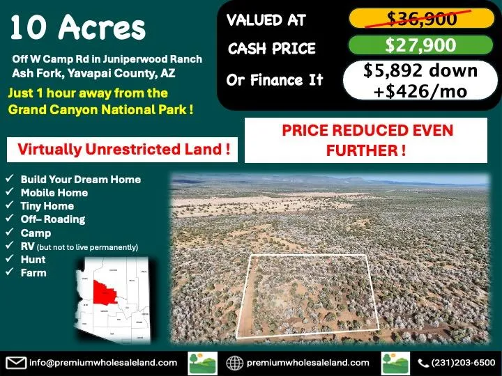 Situated near the growing town of Ash Fork inYavapai County, this area is seeing rising demand and long-term equity appreciation, making it not only a lifestyle choice but also a smart investment. With the unmatched beauty of northern Arizona, this is your chance to enjoy off-grid living with unlimited possibilities. Located with an easy reach from the following, Grand Canyon National Park-60 miles, Phoenix-135 miles, Flagstaff-60 miles, and Sedona-88 miles.