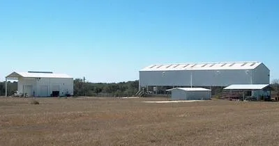 Large open air pavillion (5120 Sq. Ft.), metal construction, metal roof, commercial grade slab foundation, 10 ton hoist, 3 phase 480 transformer that is converted in building to 220 and 110, loading dock, handicap ramp, halogen flood lights. Sidewalks enable easy access from Pavillion to covered BBQ area, His and Her bathroom building and to 3 other slabs. The smaller building of 1200 sq. ft. houses the office and adjoining shop area. The office is complete with ch/a, reception area, kitchen, office and bathroom. The shop has 5 overhead doors, 10 ton hoist and compressor.Completely fenced with security fencing. Water Well.