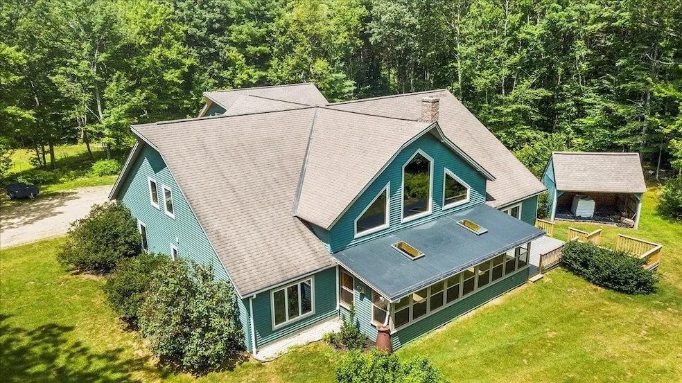 At the end of a tree lined drive this country Contemporary awaits you, situated on a private 10 acre parcel with stone walls, mature perennials, and a mix of lawn and woods. The main level enjoys an open floor plan, perfect for entertaining; cooks kitchen with gas range, stainless appliances, pantry cabinets as well as a butler's pantry anchors the space. The two-story fieldstone hearth with pellet stove insert is the main focal point of the living room and there is a dining area as well. The primary suite includes walk-in closet and bath with shower and jacuzzi tub. Rounding out the main level is an office, powder room, dedicated laundry room, two guest bedrooms and a guest bath. The second floor includes a generously sized loft perfect for family room, game room or work from home space. There is an additional half bath, storage room and the whimsical "forest room". 2-story, 2-car heated garage with workshop and mechanical room plus a 3rd full size garage bay on the back. Radiant heat and 5 (you read that right!) mini-splits keep this home eminently comfortable!