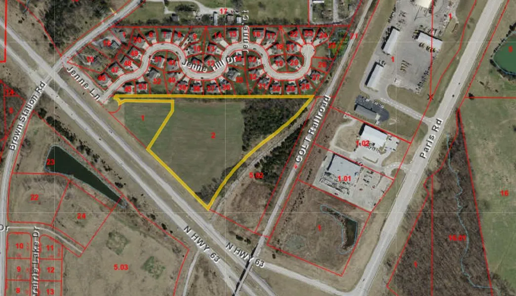 Terrific Hwy 63 traffic visibility with ~10 acres (within 2 tracts) with many possibilities for business with M-OF zoning.