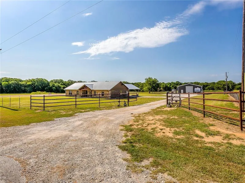 This is a must see! Beautiful 2018 built, 2300 plus sq ft custom home, its sits on a little over 10 acres. Kickapoo creek runs along the back edge of the property. Deer and other wildlife can be seen along the treeline by the creek in the mornings and evenings! There is a huge two car carport attached to the home, large enough to hold two large pick up trucks! Beautiful 30x40 metal shop with concrete floor, electricity and plumbing! There are stalls built off the back side of the shop. There is a nice arena just east of the house! This is an unbelievably well kept property, in one of North Texas's hottest areas!! Brock school district! Home is on a dead end road, with very little traffic! Don't miss this one! Call Sam Byrd at 254-592-6877 for more information!