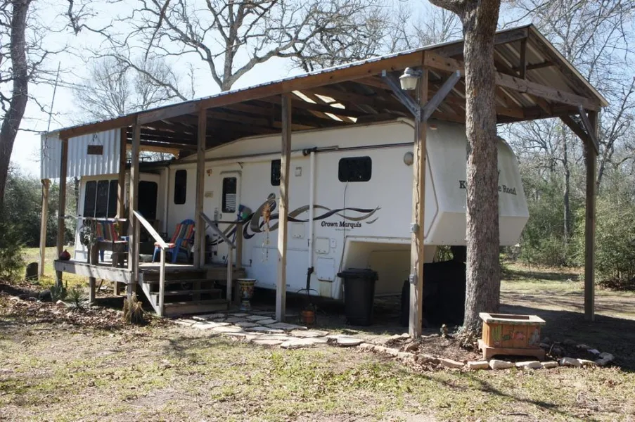 Great weekend retreat! Secluded 10 acre hideaway located minutes from Lake Somerville,Bryan/College Station or Brenham. Drive along the well paved county road, turn into the gated property and immediately feel relaxed being surrounded by beautiful mature trees. Enjoy a permanently covered, furnished 5th wheel RV that has lots of storage, 2 roof top A/C units, washer/dryer, and refrigerator. The property is completely fenced with 2 entry gates and also includes a 16x24 air conditioned workshop that could be used as additional sleeping quarters or perfect for any hobbyist. +/- 2 acres situated in the middle of the property has been cleared for future possible home site!