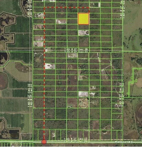 Research Parcel InformationFrom US17 at the Winn-Dixie, take SR74 to the Bermont crossroads, the intersection of SR31 & SR74. From the crossroads go 8.5 miles further east on SR74 to a grouping of mail boxes on left. One significant mailbox is numbered 50044. Turn left and go north on the private marl dirt road east of the mailboxes for 1.5 miles passing two roads entering from the right. The third road at 1.5 miles then turn right and go east just about 3/4 of a mile to an intersection. Turn right and south and & go north about 330 feet to the NE corner of the property. Property has 660 feet further south to the south boundary of the 10 acres.