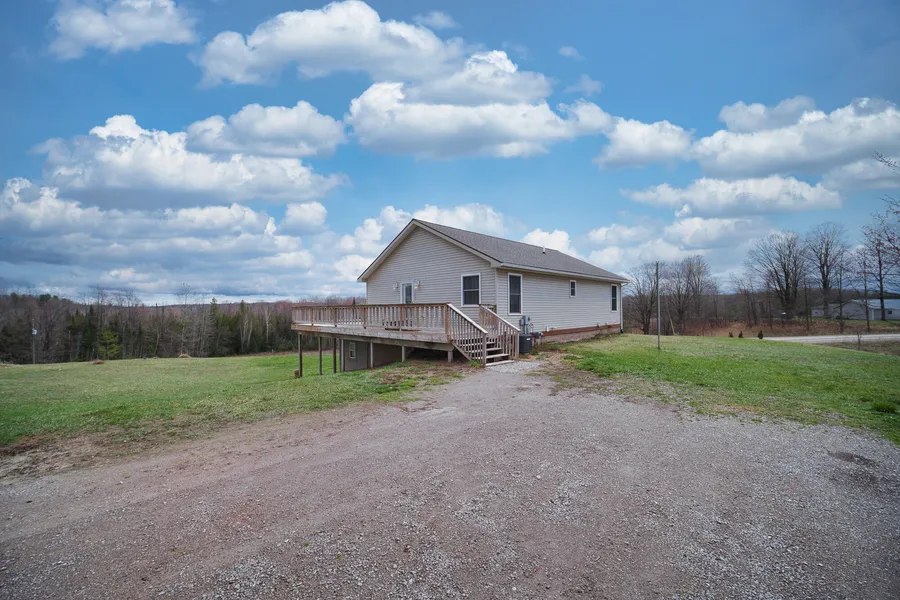 3 bedroom, 2 bathroom frame constructed home 2 miles east of Wolverine. This ranch style home is situated on 10 acres and very near hundreds of acres of state land. Open floor plan, tile floors, finished walk out lower level are a few of the amenities this home offers.