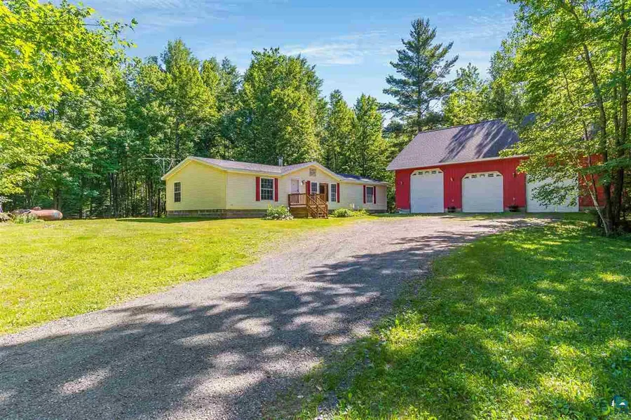OFFER DEADLINE 6/16 4pm. Nestled amongst the trees on approx. 10 acres of land. This spacious home offers a large cabinet filled kitchen , informal dining overlooking the yard, and 12 x 12 deck through the slider, living room with a wood burning fireplace, 3 bedrooms, and 2 baths. The large main bedroom offers 2 walk in closets and access to a 3/4 bath with laundry. Updates include light fixtures, ceiling fans, wood flooring in 1 bath, hall and dining area, a thermostat and approx. 5 yr. old forced air furnace. The 48 x 36 finished, heated garage offers a half bath that is also plumbed for a shower, a space for laundry that would accommodate an electric dryer and is plumbedfor a washer. 2 rooms that were used as offices could also be used for a hobby/craft room or many other uses. The garage was built with attic trusses allowing for the attic area to be finished off adding more space to ...