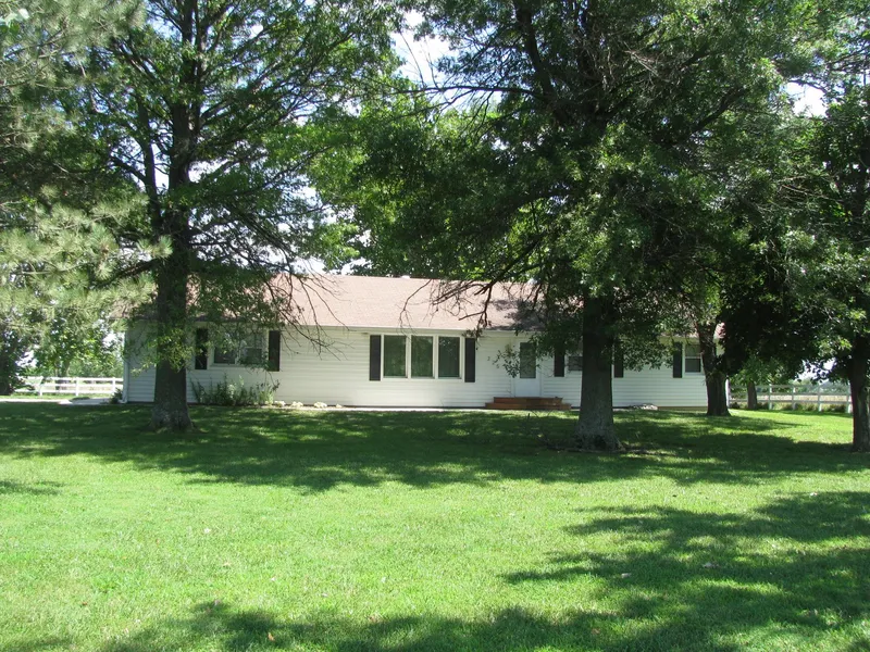 Nice Ranch Style Home on 10 Acres, full unfinished basement studded-in. 3 BR, 2 full baths, large master bedroom, CA & Heat pump, 2 car attached garage. Great house setup with several pens, large pond, 30 x 40 three door shop, 20 x 32 horse barn. Good location, close to I-35. Taxes $2,746