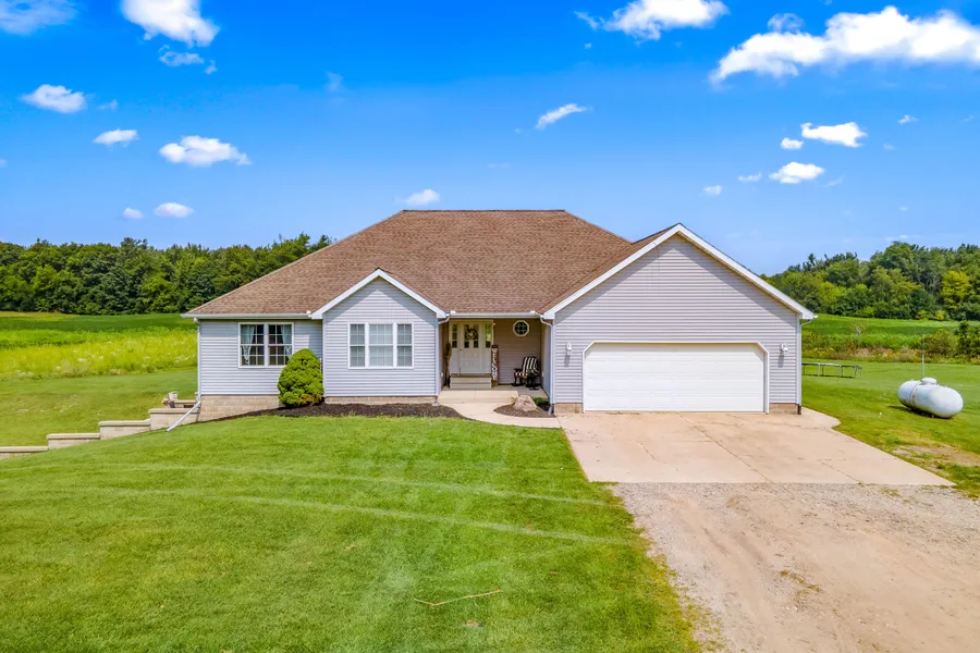 Welcome to this newer 5-bedroom/3-bath ranch home sitting on 10 acres in Osseo. You will enjoy your 2-car attached garage and 30 x 40 pole barn that has electric, water, cement floor, drywall, and is insulated. The home was custom built in 2002 and has been updated since then. Updates include luxury waterproof vinyl plank flooring throughout the upstairs, all new light fixtures, new paint, all woodwork was painted white, bathrooms were updated, and all new appliances. Your kitchen has a ton of cabinets/countertop space. The full walk out basement features many updates. Updates include bathroom adding two bedrooms. The basement also has space for a large family room, play area, exercise area, and craft space. The walk out basement has a large concrete pad outside for entertaining. Call the listing agent today! This company makes no warranty or representations about the contents of this data. It is the responsibility of the parties looking at the property to satisfy themselves as to accuracy of this information. Taxes were obtained from the local assessor and the taxes could change for the buyer after a closed transaction.