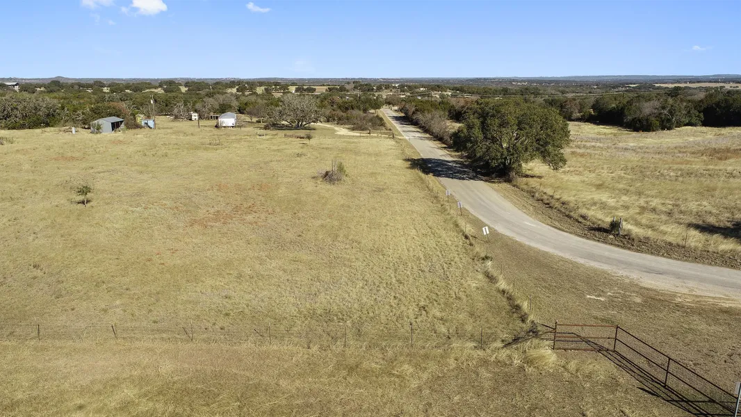 10 UNRESTRICTED Acres located less than a 1/4 off of HWY 290 in Hye TX. The property offers approx. 700 ft. of frontage on paved Rocky Rd. There is power and a great water well on-site. The improvements consist of great perimeter and cross fencing, a manufactured home that is in need of some renovating, a barn/workshop, Septic system, and RV Hookups. Some of the land has been cleared of cedar and some has been left natural. This property offers great potential for several different uses. Located in the Heart of the Texas Wine Trail.