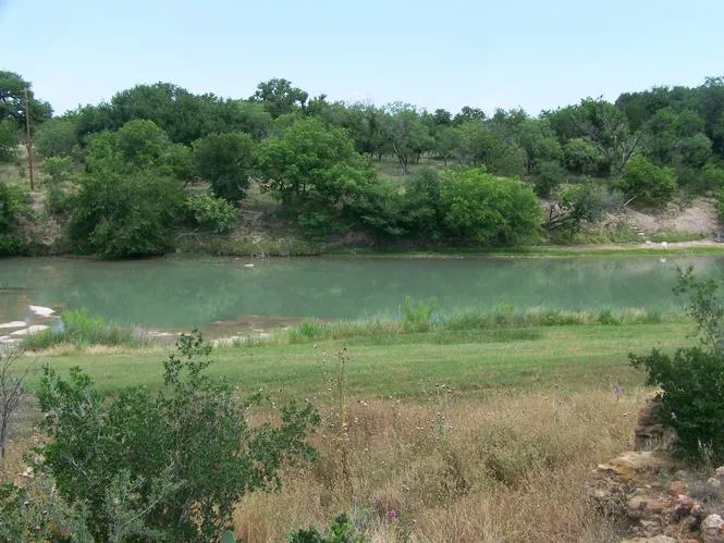 This is a show place if there ever was one,, Home on a hill over looking the river with all the amenities anyone could ask for. Huge Shade trees, paved drive lined with rock, double garage with garage doors for breezeway, rock fireplace, patio in back for entertaining, Back carport with 1 bedroom apt. horse stalls and storage for hay.. 431 ft of Mainn Llano River, play, fish,swim or kayak.