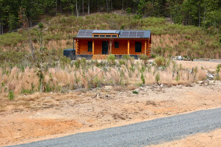 Turn-key off-grid cabin on 10 acres. Includes solar system capable or running mini split a/c system, propane log fireplace, stainless steel propane fridge / freezer, propane range / oven, granite counter tops, custom cabinets, rainwater capture system, septic system. Cabin is ready!