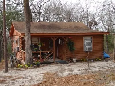 10 wooded acres on FM 1511 in the scenic Flo Community with charming 2 bedroom, 1 bath log cabin. In addition, there is a nice storage building and an older travel trailer. Land is partially fenced. Won't last long @ $69,900!