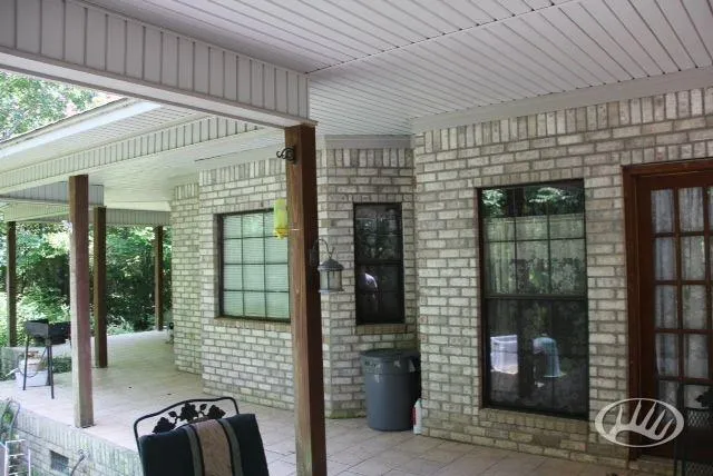Beautiful home with 10 acres M/L located on a 100 acre lake. Home is very unique, with 5 sets of French doors and a huge porch that wraps around the entire home. The flooring on the porches are all ceramic stating this home is designed with style. The exterior is brick and vinyl designed for low maintenance.