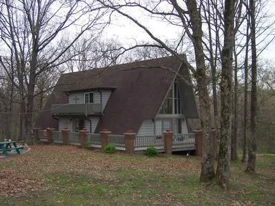A-frame home on 10 open & wooded acres with beautiful landscaping!!! Gorgeous home with floor to ceiling stone fireplace! Plenty of windows to allow for ample sunshine. Special skylight in upstairs bedroom! Loft upstairs has room for an additional sitting area or office area. Large wrap-around deck with brick pillars and walk out balconies off each bedroom, great spots to enjoy the peaceful country setting! Nice wooded acreage for privacy. Great for a weekend retreat, and less than 5 miles from Highway 70! **Adjoining 10 acres with trailer & shed also for sale for $98,000**