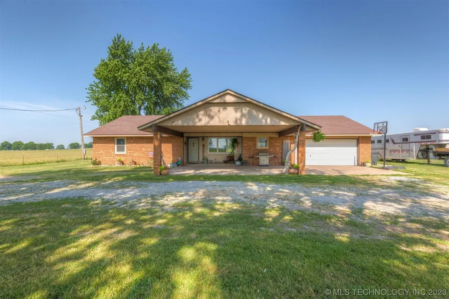 Seller is offering a $5K FLOORING ALLOWANCE and list price has been adjusted to allow for further cosmetics updates as desired! Here's your chance to own a piece of the American Dream! This captivating 3bd, 2 bath home on 10 acres of sprawling farm and ranch land offers an array of features that make it a true gem. The property includes a brand new 36x40 pole barn, a 36x30 barn, a recently re-sided shed/tack room with a built-in chicken coop, and even a silo, providing ample storage and workshop space for all your needs. Bring your animals along, as the land is fully fenced and crossed fenced, with the beginnings of a horse arena already in progress. Inside the home, you'll find recent updates including fresh interior paint, a freshly painted fireplace, addition of can lights in the kitchen, and much more! The new roof and heat pump in 2018, vinyl windows in 2022 and 2010, and the water heater in 2019 ensure modern comfort and efficiency. As you arrive, the inviting portico with a circle drive sets the stage for the beauty that awaits you. An old water well adds a touch of nostalgia and potential for alternative water sources. Additionally, the property features a second set of utilities and a second septic system on-site, offering additional flexibility. Conveniently located less than 5 miles from the city of Pryor, this property provides the perfect balance of tranquility and accessibility. Whether you're looking to embrace a peaceful rural lifestyle or engage in farming and ranching endeavors, this property offers endless possibilities to make your dreams a reality.