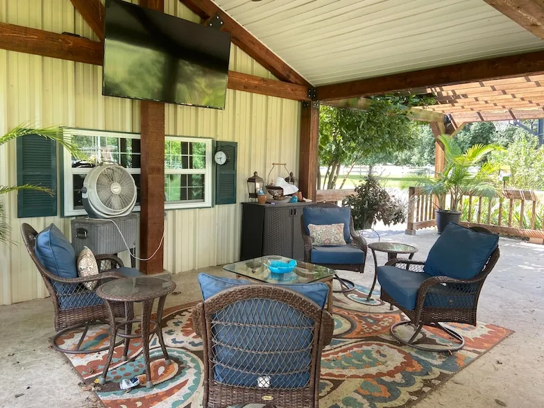 This property presents exceptional versatility, situated on 10 acres of level, cleared land with a total of 9,600 square feet under roof. It offers substantial space suitable for a range of uses, whether residential or commercial in nature. The residence encompasses 2,800 square feet of living space, comprising four bedrooms, a living room, dining room, and den. Modern amenities include a newly installed HVAC system, dishwasher, and vent hood, enhancing both comfort and functionality. Additionally, a generously sized pantry provides ample storage capacity. A prominent feature of this property is the expansive shop area, which benefits from a dedicated water tank. The shop is equipped with one standard garage door and one RV-sized garage door, affording considerable space for vehicle equipment, or workshop activities. Propane heaters ensure a comfortable environment within the shop, while a conveniently located storm shelter enhances safety and preparedness.