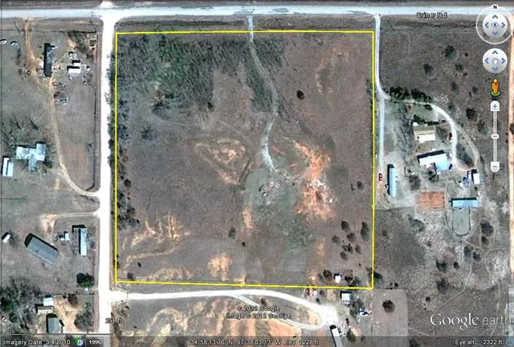Ten fenced acres with hilltop view to do as you please. Well, septic, storm cellar, new field fencing and concrete runners for a manufactured house. Property is unplatted , mobile homes and livestock allowed. Easy access to Hwy 76. Blacktop road. Buyer to verify taxes.