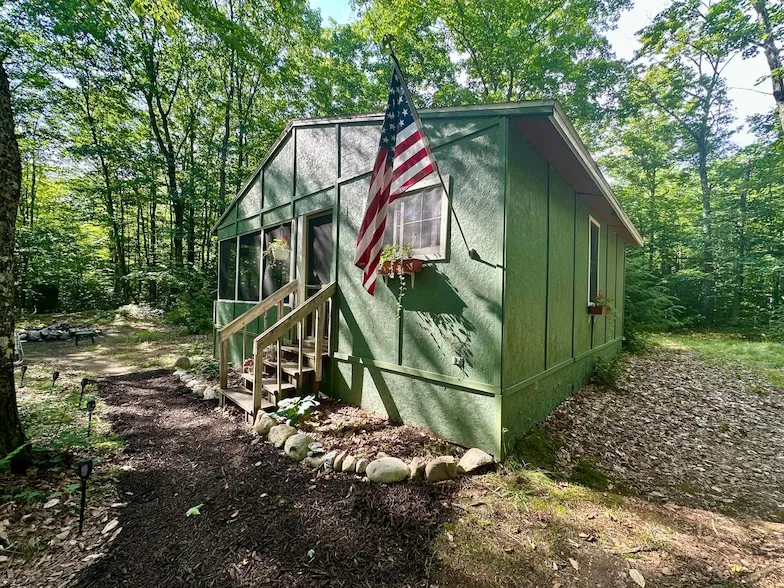 Cute as a Button! 10 Acres with Adorable Cabin in Tahquamenon Woods! Looking for the perfect cozy getaway? This charming 24x24 pole barn-style cabin, built in 2001, sits on 10 beautiful wooded acres in the heart of the Tahquamenon Woods area. With a screened-in porch made for summer nights, a full kitchen, and open dining/living area, it's ready for immediate enjoyment! The cabin offers a unique layout with a half bath separating two bunk-style sleeping rooms--ideal for family and guests. It has 12V power wired for ceiling fans and lights, with some battery-powered lighting for convenience. Freshly painted with stylish new vinyl flooring throughout in 2024, this cabin has been lovingly maintained, cutely decorated, + nice landscaping!