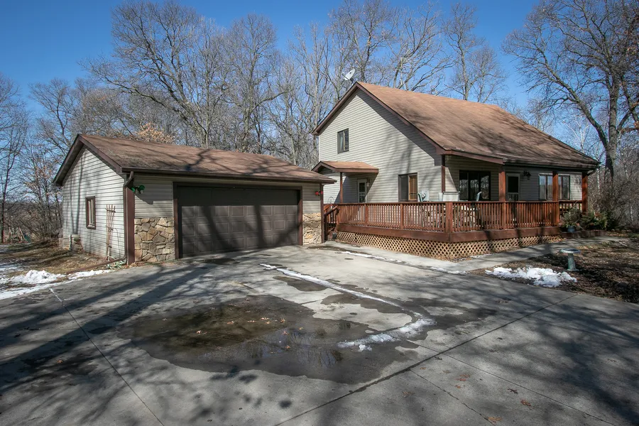Beautiful home nestled on 10 acres tucked into a heavily wooded lot w/ creek running through the back. Enjoy an abundance of wildlife throughout the property as well raspberries, asparagus and a variety of flowers. Land offers excellent hunting and plenty of room to roam. Fantastic wrap around deck w/ covered front porch. Garage is insulated and heated & there are 2 additional storage sheds for all your storage needs. You will fall in love w/ the vaulted cedar ceiling in the Living Room and large oak staircase w/ loft. Each level of the home offers a bathroom. Spacious LL family room for all your entertaining needs. Watch the 3D tour by Matterport!