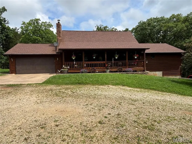 COUNTRY ROAD LEAD ME HOME - to this Rustic 4-Bedroom home with workshop in a private country setting. This rustic 4-bedroom home offers a spacious open floor plan with soaring vaulted ceilings and warm, inviting finishes throughout. At the heart of the living room, a stunning floor-to-ceiling stone wood-burning fireplace creates the perfect cozy focal point for gatherings and quiet evenings alike. The kitchen comes fully equipped with appliances, and main floor laundry adds everyday convenience. The primary suite provides a peaceful escape, complete with ample closet space and a private en-suite spa bath & separate shower & bidet. Additional living space on lower level., great for entertaining. There is also an abundance of storage. Step outside to enjoy a large deck and patio ideal for relaxing or entertaining. A two-car attached garage is paired with a tuck-under garage on the lower level for additional storage and flexibility. A dream for hobbyists or small business owners, the 30x40 workshop features concrete floor, 220 electric, and oversized overhead doors. All of this is nestled on 10 scenic acres, offering peace, privacy, and endless potential.