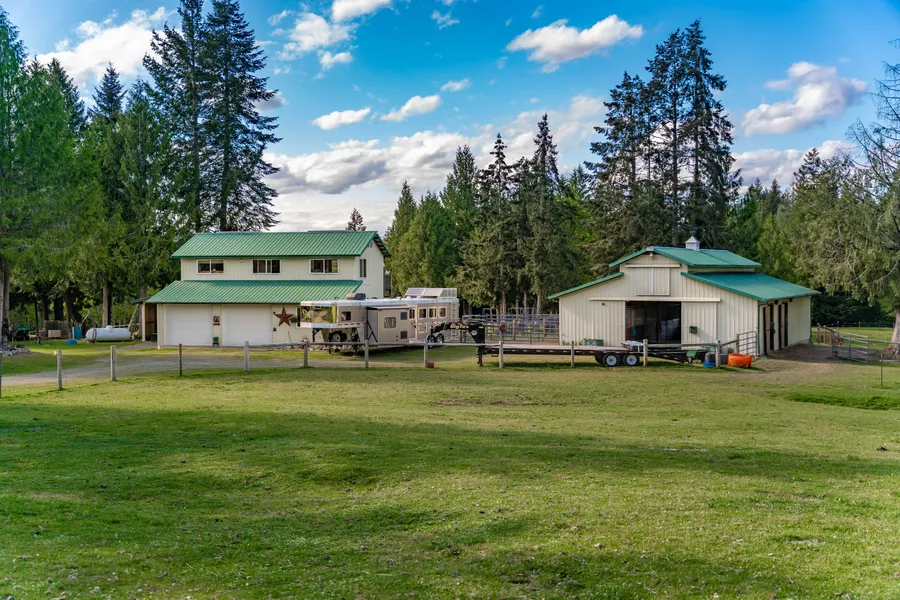 The ultimate live & ride home for the horse enthusiast. Live right next door to the horses! These 10 fenced & gated acres holds the ultimate horse heaven. 6 Stall Barn w/ matted stalls, auto waterers, turn outs, tack room & 4 /5 ton hay storage. Round pen w/ perfect base for training. Unique home w/ 2-car garage, 2 bed, 1 full and 1 3/4 bath, just right. Extra den /flex room for work space and crafts. Full length deck overlooks the private pastures and offers even more captivating views of the equestrian property. Also includes shop space, hot tub ready. Great location, private yet close enough in. 13 Miles to Belfair, Minutes to Gig Harbor and amenities. Ultimate horse heaven retreat yet close to everything. Additional Parcels Avail