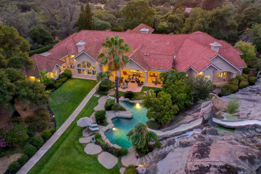 Rare opportunity to own a private 10-acre estate with over 10,000 sqft of single level living, resort style backyard, guesthouse, and an equestrian facility featured in Sacramento Magazine. Located in the Northern California foothills, offering an abundance of leisure activities and a close vicinity to shopping and dining. With over $2.4 million invested in additions and renovations, the home has been intricately designed to suit all your needs. This property features exceptional amenities, from the Savant smart home automation controlling all cameras, alarms, gates, lighting, temperature, and media remotely; to the saltwater pool carved out of natural granite with three waterfalls and a 50-foot slide, this estate is well-suited for both high-tech relaxation and entertainment. The opulent 2600 sqft equestrian facility highlights a living area with heat/AC, a full bathroom, 5 paddocks, and an illuminated indoor riding arena with surround sound to play your favorite playlist as you ride.