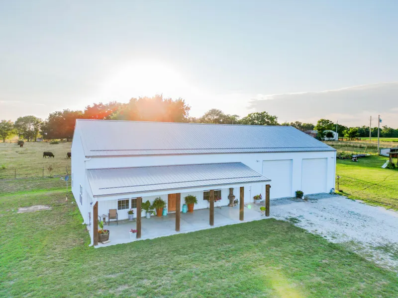 Introducing luxury living and rustic elegance, nestled on 10 pristine acres just outside of Bolivar, MO, we present this exquisite and swanky bardominium. Welcome to a high-class residence with the perfect blend of countryside charm.Upon stepping inside, be prepared to be captivated by the thoughtful finishes and well-designed floor plan that will leave you in awe. The unique Phoenix quarry countertops make a bold and exclusive statement, setting this home apart from the rest.The main level boasts high ceilings, an open-concept kitchen, living, and dining area, providing a seamless flow for entertaining and creating unforgettable memories. Indulge in the comfort and functionality of the master suite, complete with dual vanities, a walk-in shower, and a walk-through closet with direct access to the laundry room - convenience at its finest.On the same level, you'll find an additional bedroom and half bath, catering to your family's needs with ease. Ascend to the loft area upstairs, where a tastefully designed bedroom and bath await you, adorned with custom railings that complement the house's aesthetic perfectly.It doesn't end there; this property offers a massive 40 x 40 attached garage, not just for your vehicles but also as an added living space, ideal for unwinding after a long workday or hosting gatherings with friends and loved ones. Additionally, a separate detached shop ensures you have ample storage for tools and toys.The 10-acre estate is fenced on all sides, making it an idyllic haven for your family pets or even the possibility of accommodating livestock, should you desire a touch of rural living.Built with meticulous attention to quality and heart, this home exudes class and sophistication while embracing the essence of countryside living. The lifestyle you've dreamed of awaits you in this classy and elegant bardominium.