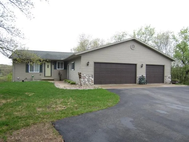 Perfect country setting for this ranch home on 10 acres with 80+/- more available if desired. Great views from every room in this 1487 sq foot home with finished family room in the basement. Then enjoy more great views from the large deck overlooking your 10 acres of privacy and nature. Nice open-concept design, the home features 2 main floor bedrooms, a 3rd bedroom in the lower level along with a walkout entrance large patio area for more great outdoor living space. Property is set back off the road with a blacktop drive to 3-car attached garage. Home is approximately 13 years old and is low maintenance with vinyl siding with stone accents. Call Opera John Keyes to discuss options for owning all 10 acres or over 80 acres if desired at 715-321-2544.