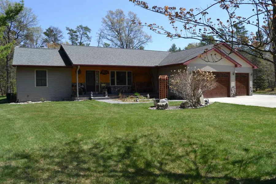 Stunning home on 10 acres, in addition to the basement there is over 2300 square feet on the main level, 4 bedrooms plus an office that could be used as a 5th bedroom. Bathrooms total 4 including private master and 3/4 bathroom in the basement. Garages include a 2 car finished attached garage plus a 2400 square foot detached garage with heated workshop area. This home is located in the Roscommon area on blacktop county maintained road approximately 1/2 mile from AuSable River road end access and close to state land and trails.