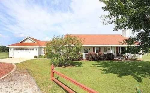 Country living at is finest! Spacious 3BR/2BA ranch home with full covered, tiled front porch overlooking 10 +/- acres of pasture land (zoned OR) including small pond. Enter into this spacious yet warm home with wood flooring, beamed vaulted ceilings & brick wood burning fireplace. Wrap around kitchen with stone counter tops, tiled back splash, stainless appliances & even a wine cooler. Master suite with adjoining sitting room & master bath with 3 single plus 1 walk-in closet. Retreat to the game room ("man cave") or outdoors to the stoned open porch & patio area with unique bar. Attached 2-car garage with electric opener.