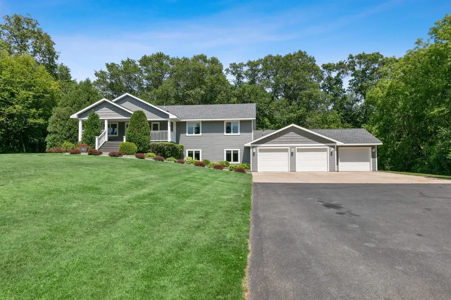 Beautiful acreage property located just north of Becker and 2 miles from Pebble Creek golf course on 10 wooded acres. Huge 36'x72' outbuilding with a concrete floor and tall overhead door for an RV. Home was remodeled in 2010 with nice custom finishes and has a newer roof and siding. Vaulted ceilings in the kitchen and dining along with skylights provides abundant natural light. The home provides many areas for fun entertaining and relaxation. Enjoy a morning cup of coffee on the front porch or deck. Both the porch and deck were constructed with maintenance free materials saving hours of staining. The owner's suite boasts a tile surround shower, corner whirlpool tub and walk-in closet. There are three additional main level bedrooms for a total of four on one level. Let the fun begin in the basement with a billiard/game room and wet bar, which walks out to a stamped concrete patio and firepit. Work right from home in the lower level office or one of the main level bedrooms. A must see!