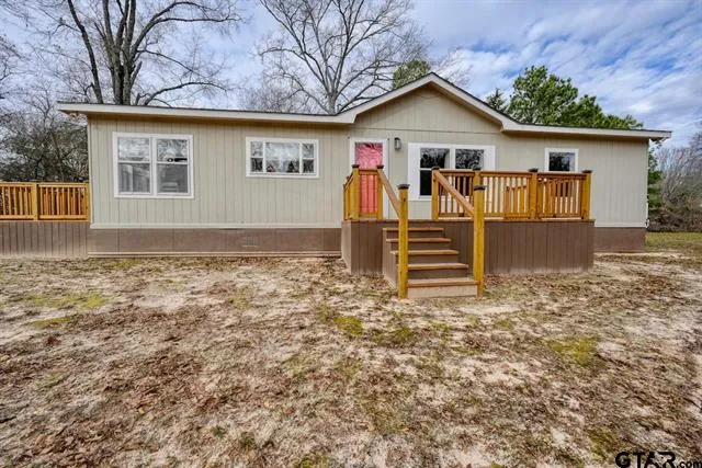 Nestled on a serene 10-acre tract at the end of a quiet dead-end road, this completely remodeled home offers the perfect blend of modern comfort and tranquil country living. Everything in this home is brand new, from the floors to the roof and porches. With six-inch insulated walls, this home is energy-efficient and built to last. Inside, the electric fireplace with a blower adds warmth and ambiance to the open living space. The kitchen is a chef's dream, featuring an island, all-new appliances, and plenty of storage. The thoughtfully designed floor plan includes three bedrooms and two baths. The owner’s suite is a retreat of its own, boasting an attached bath with a walk-in shower and a soaking tub for ultimate relaxation. Two additional bedrooms share a full bath, offering comfortable accommodations for family or guests. Outside, the property is a nature lover’s paradise. The land has been meticulously maintained, with a cleared area around the home surrounded by mature trees and a wooded border, offering both beauty and privacy. The square-shaped acreage includes RV hookups and is frequented by deer, making it an ideal setting for outdoor enthusiasts. This move-in-ready home is a rare find and awaits its new owners to enjoy the peaceful lifestyle it offers. Don't miss this opportunity to own a slice of East Texas heaven with quick access to all Tyler has to offer!