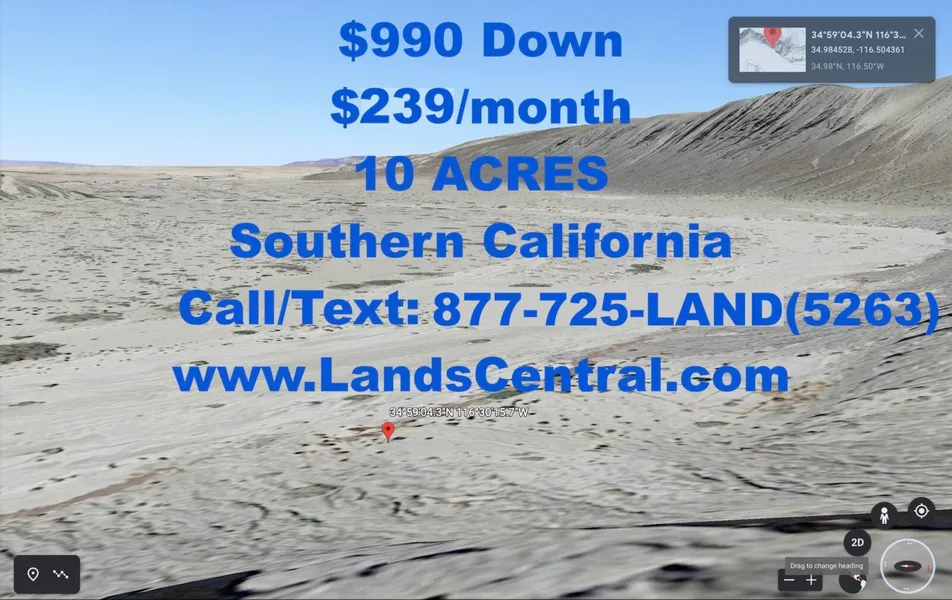 Here is a great chance to own land in Southern California. Southern California land is a fantastic investment for short or long term investors! California is the worlds fifth largest economy (recently passing France)!